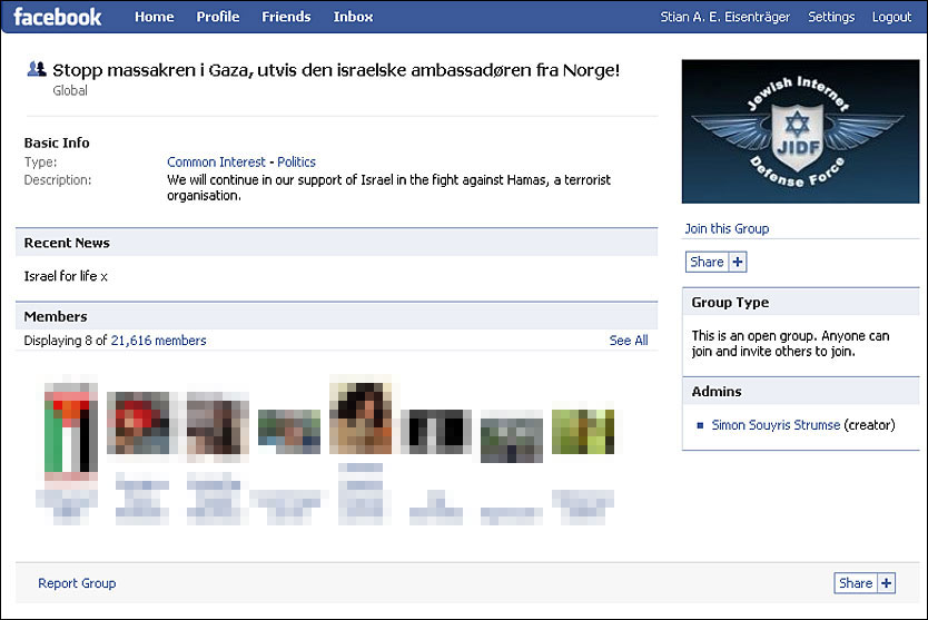 Israel driver en offensiv mot den vestlige verden som jeg aldri tidligere har sett. Det er opprettet en internett-hacker-gruppe som heter Jewish Internet Defense Force som bruker mye tid på å spre propaganda.