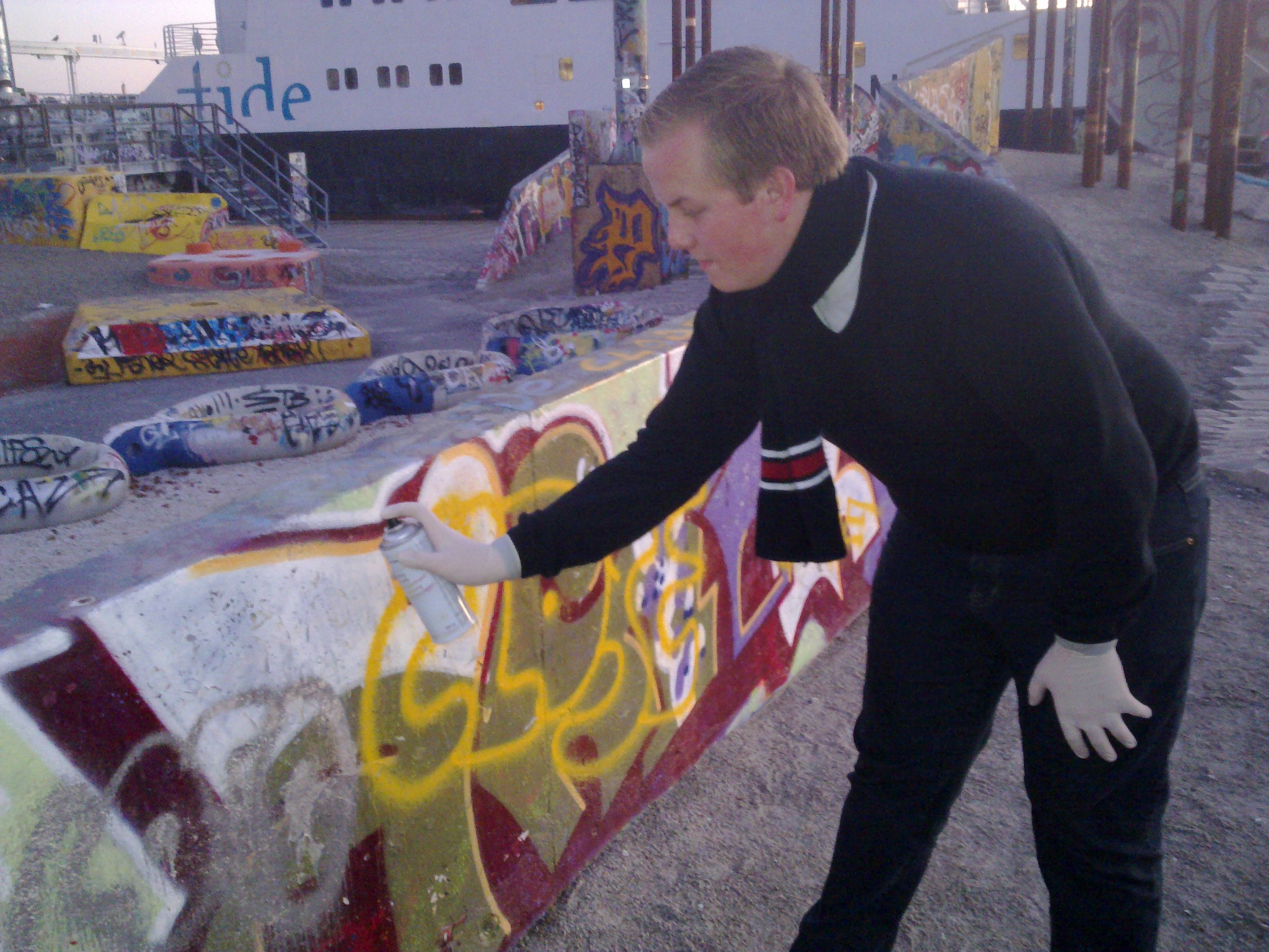 Anledningen var det jeg skrev om i går, nemlig at Høyre vil forby lovlige graffitivegger i Stavanger. P5 inviterte meg til å spraymale mot Høyre i Geoparken, og det gjorde jeg. Her er resultatet: