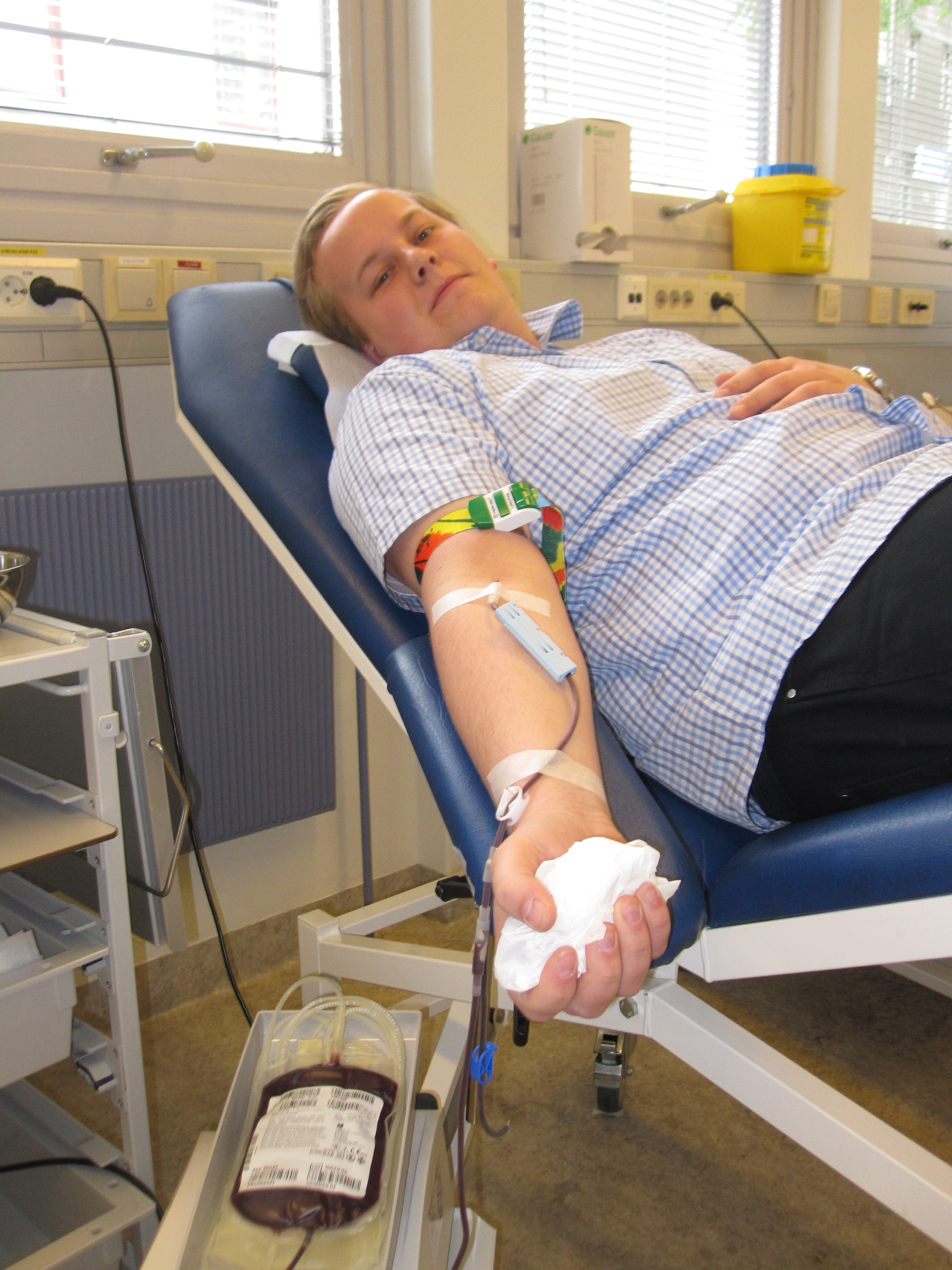 I dag ga jeg blod for aller første gang. Var mer nervøs enn nødvendig. Dette kan jeg og vil jeg anbefale til alle de som har anledning til å gi blod. Det settes jo begrensninger mot f. eks. homofile, noe jeg mener er merkelig. Alle som er friske og ellers fyller kravene som stilles bør få gi blod.