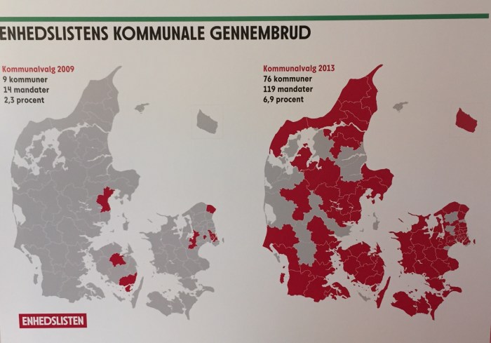 Fredag til søndag var jeg SVs representant på landsmøtet til et av våre danske søsterparti, Enhedslisten (EL). SV har i mange år vært tett knyttet til danske Socialistisk Folkeparti, men de siste årene har vi også utviklet et tettere samarbeid med Enhedslisten.
