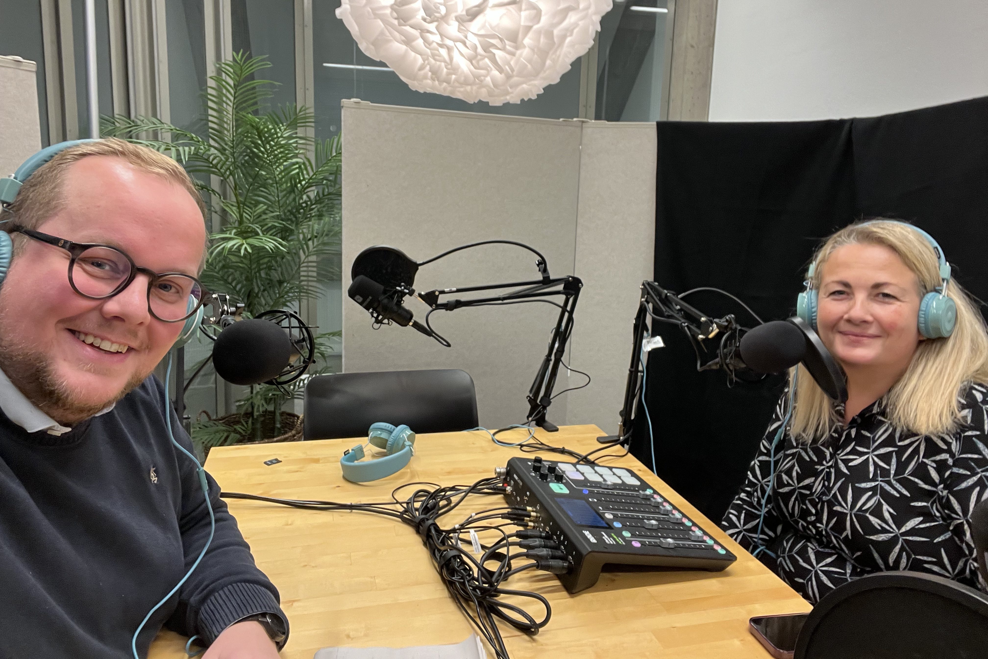 Eirik Faret Sakariassen (SV) og Mette Vabø (V) diskuterer små og store saker i Stavanger.